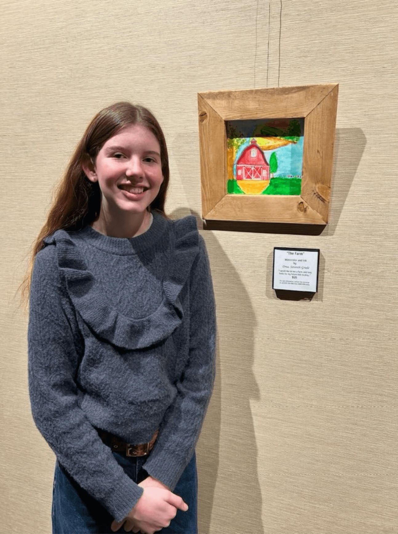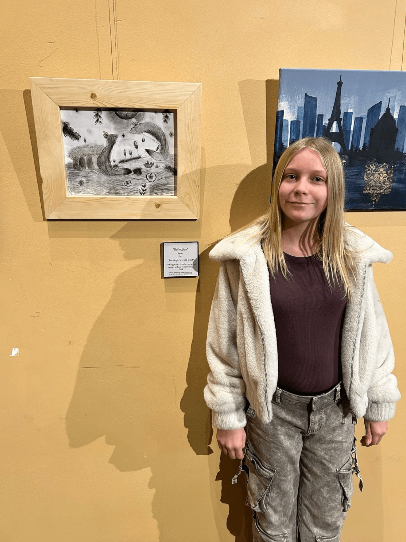 Three students in Mrs. Yeagley's class were chosen as finalists in the Central Oregon Young Artists competition hosted by the Betty Gray Gallery of Art at the Sunriver Lodge. Their artwork is on display in the gallery through January. Stop by to see their beautiful art work and while you're there, enjoy our Pre-k to 2nd grades classes entry in the Gingerbread Junction benefit for Habitat for Humanity.
