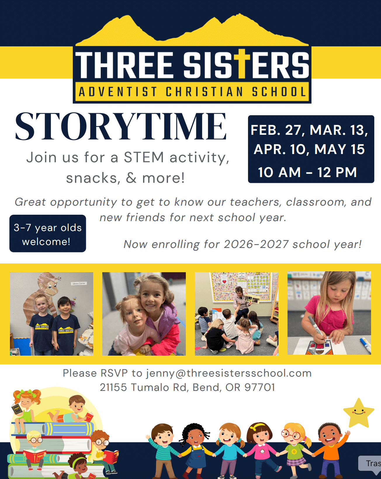 There are 2 ways to upcoming exciting school happenings! Refer below to register and to receive more information about Storytime and the Bouldering Club at TSACS!